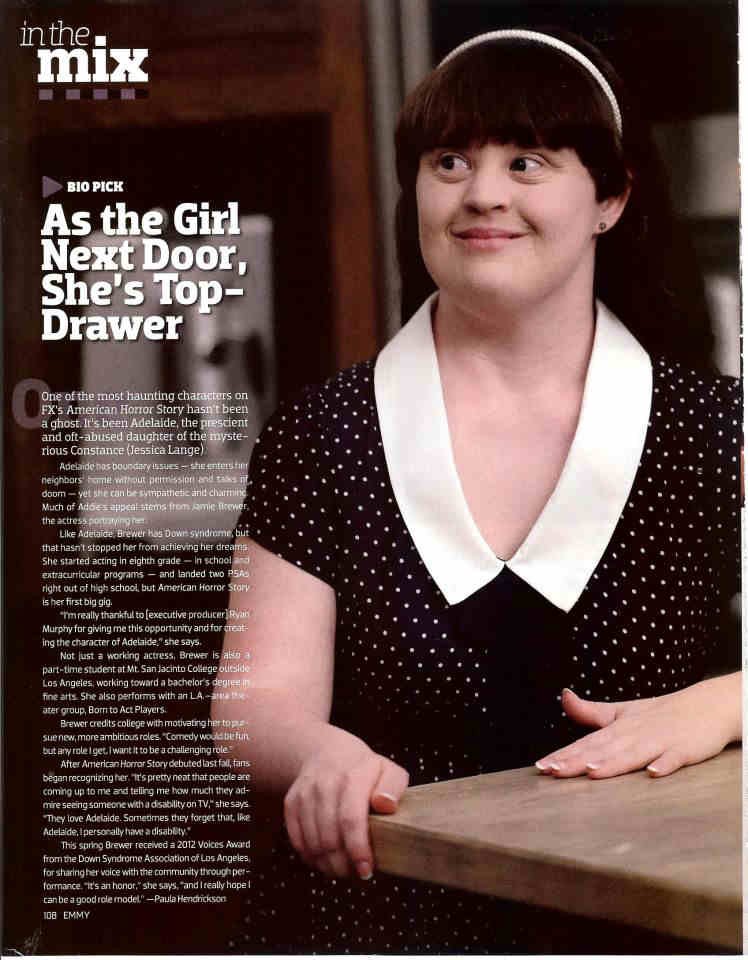 Esta primavera Brewer recebeu um Prêmio VOZES 2012 da Associação Síndrome de Down de Los Angeles, por espalhar conscientização pela comunidade através de sua performance. “É uma honra “, diz ela,” e eu espero que possa realmente ser um bom modelo. “- Paula Herdrickson